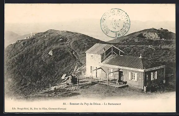 AK Puy de Dôme, Sommet avec restaurant et vue sur les collines environnantes