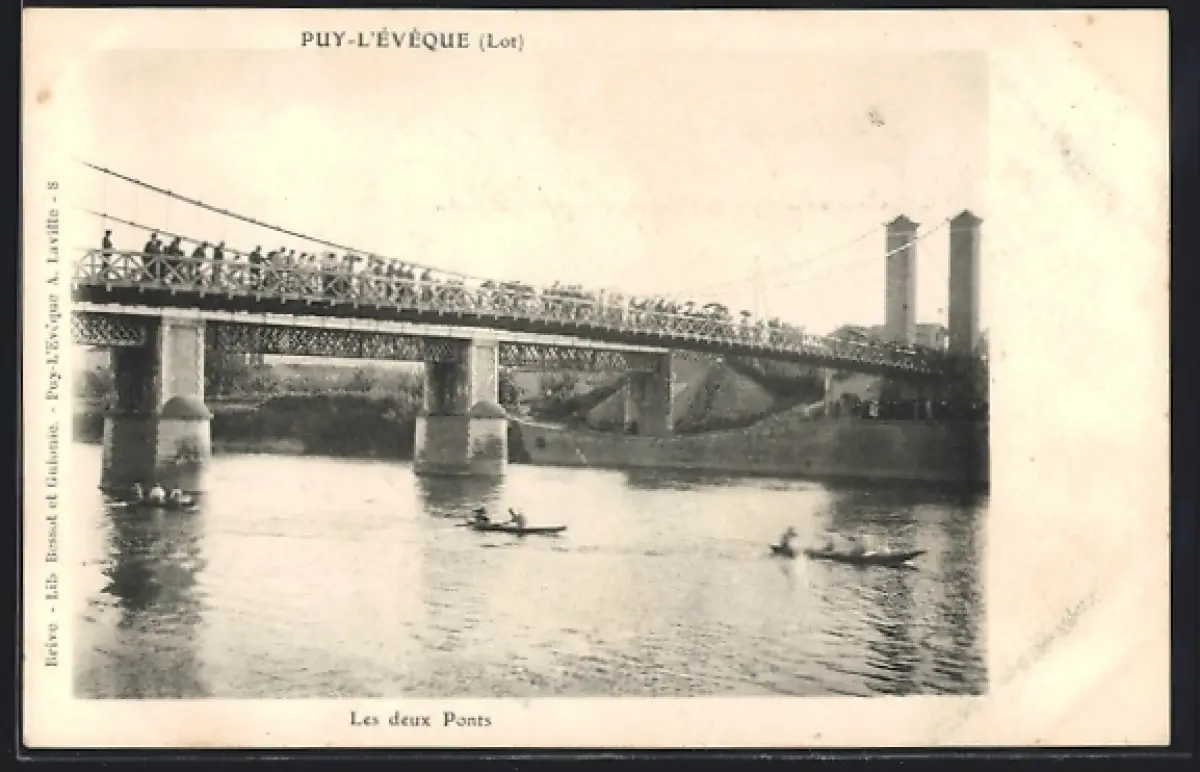 AK Puy-l`Évêque /Lot, Les deux Ponts et canoës sur la rivière