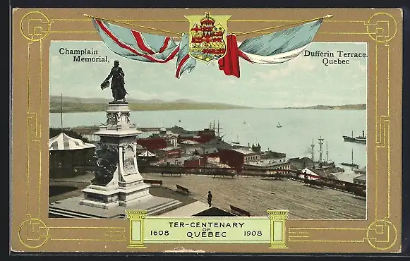 AK Quebec, Ter-Centenary 1608-1908, Champlain Memorial, Dufferin Terrace