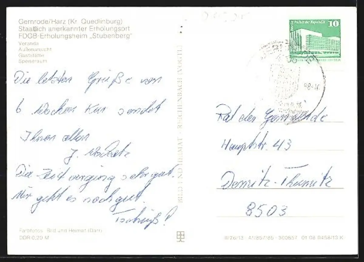 alte Ansichtskarte, gelaufen 1988, Bugspur re. unten, guter Zustand