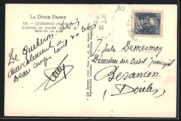 AK Quiberon, L`arrivée du Guedel au port de Belle-Île en mer