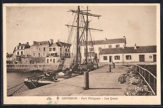AK Quiberon, Port Haliguen, Les Quais avec voilier amarré