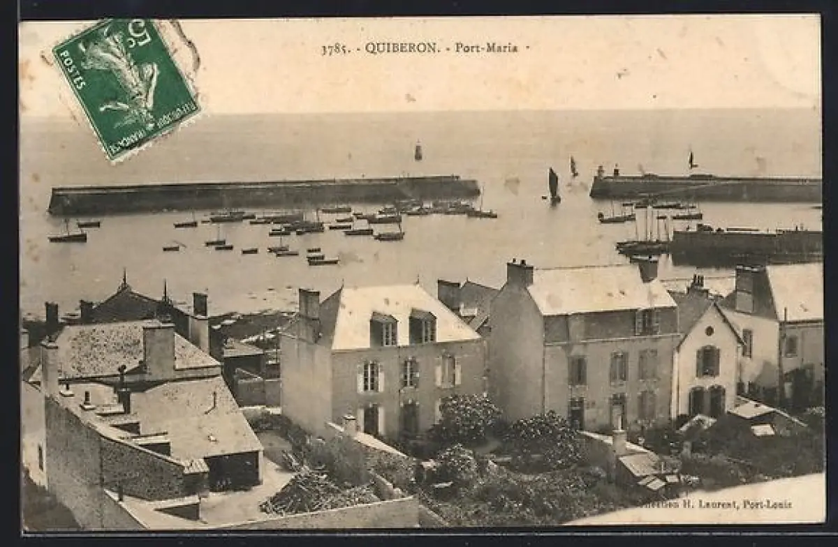 AK Quiberon, Port-Maria avec vue sur le port et les voiliers