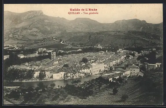 AK Quillan, Vue générale de la ville dans la vallée de l`Aude