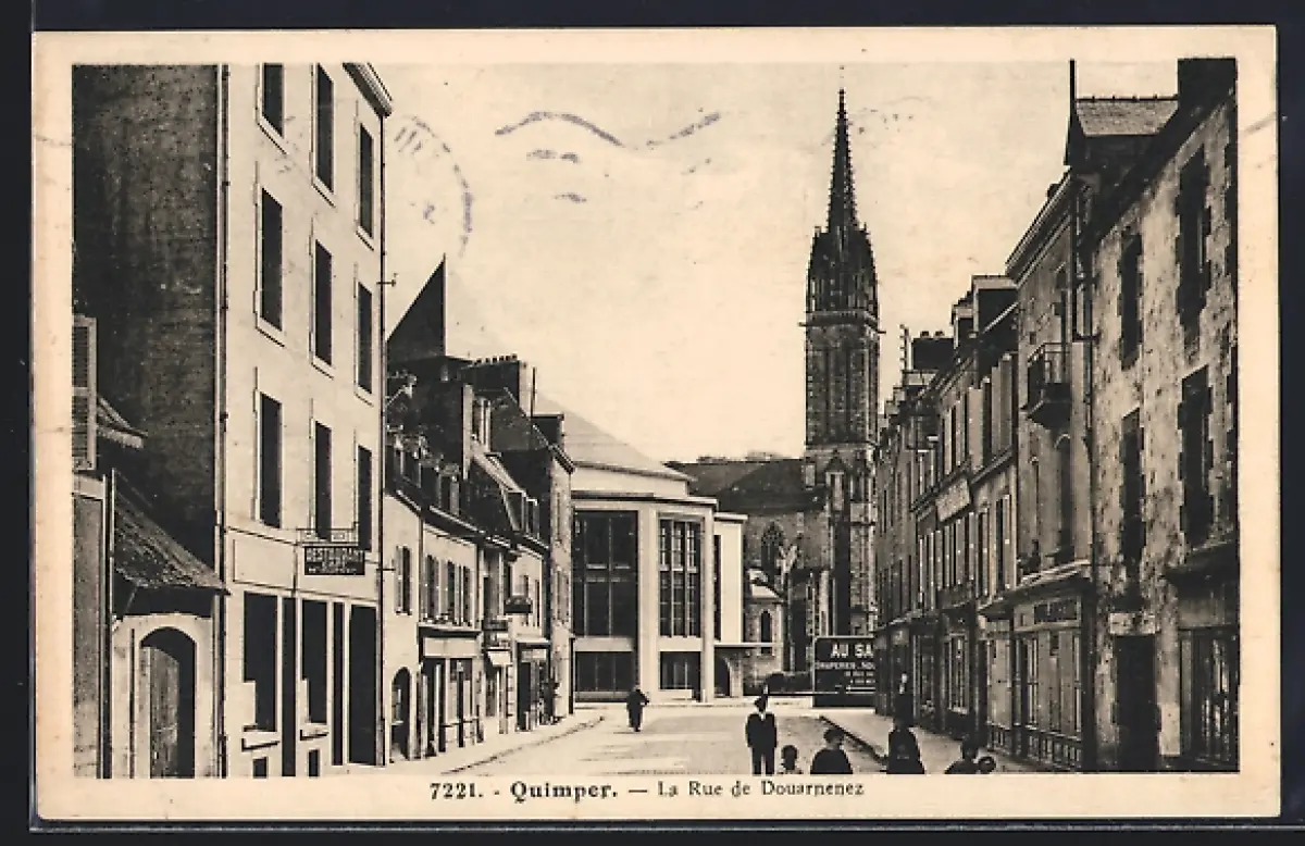 AK Quimper, La Rue de Douarnenez avec vue sur le clocher de l`église
