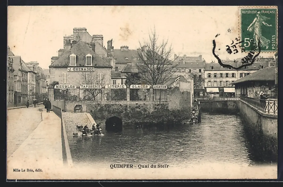 AK Quimper, Quai du Steïr avec bâtiments anciens et rivière