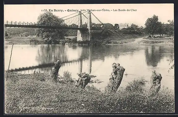 AK Quincy, Les Bords du Cher avec le pont suspendu