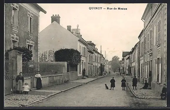 AK Quincy, Rue de Meaux avec des habitants et des maisons alignées