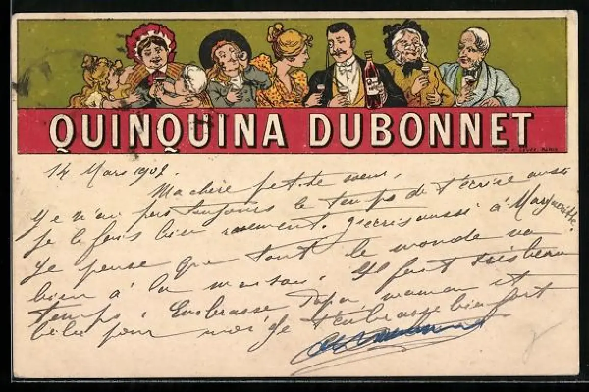 AK Quinquina Dubonnet, Männer und Frauen beim Trinken, Reklame
