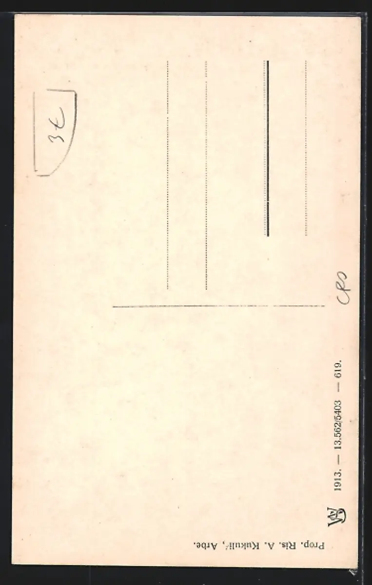 Personenbezogene Daten auf der Rückseite der Karte wurden durch blauen Textmarker unkenntlich gemacht. Die blauen Stellen sind auf die Vorderseite durchgeweicht und wirken sich negativ auf das Postkartenfoto aus