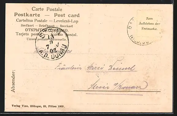 alte Ansichtskarte, gelaufen 1903, Briefmarke entfernt, guter Zustand