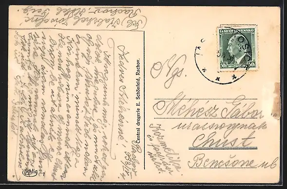 gelaufen 1938, rückseitig Oberflächenschaden, guter Zustand
