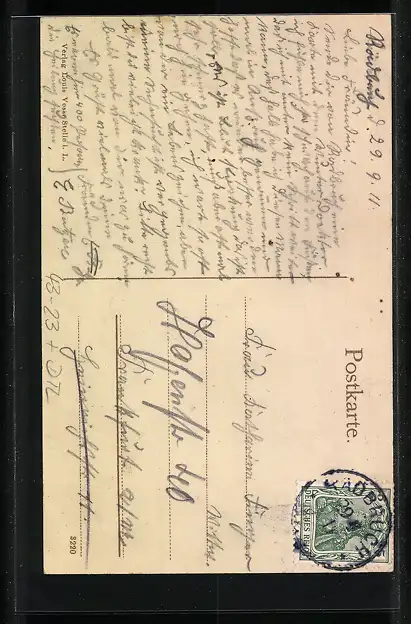 alte Ansichtskarte, gelaufen 1911, Stempelspur, guter Zustand