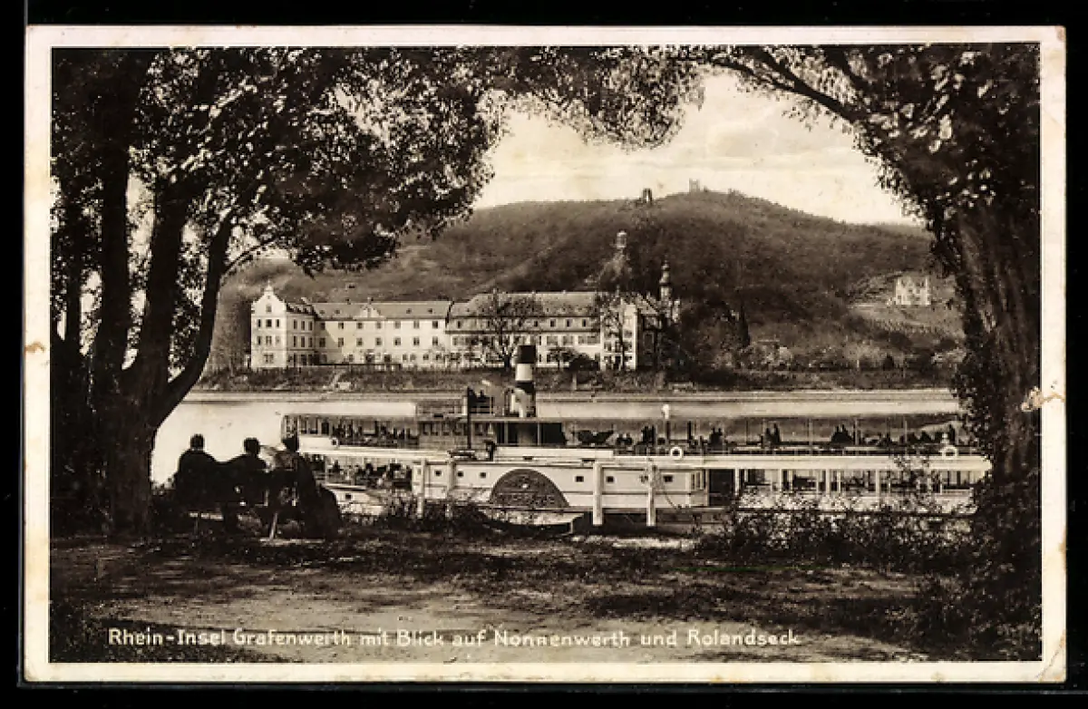 AK Raddampfer Overstolz am Rheinufer, Blick auf Nonnenwerth und Rolandseck