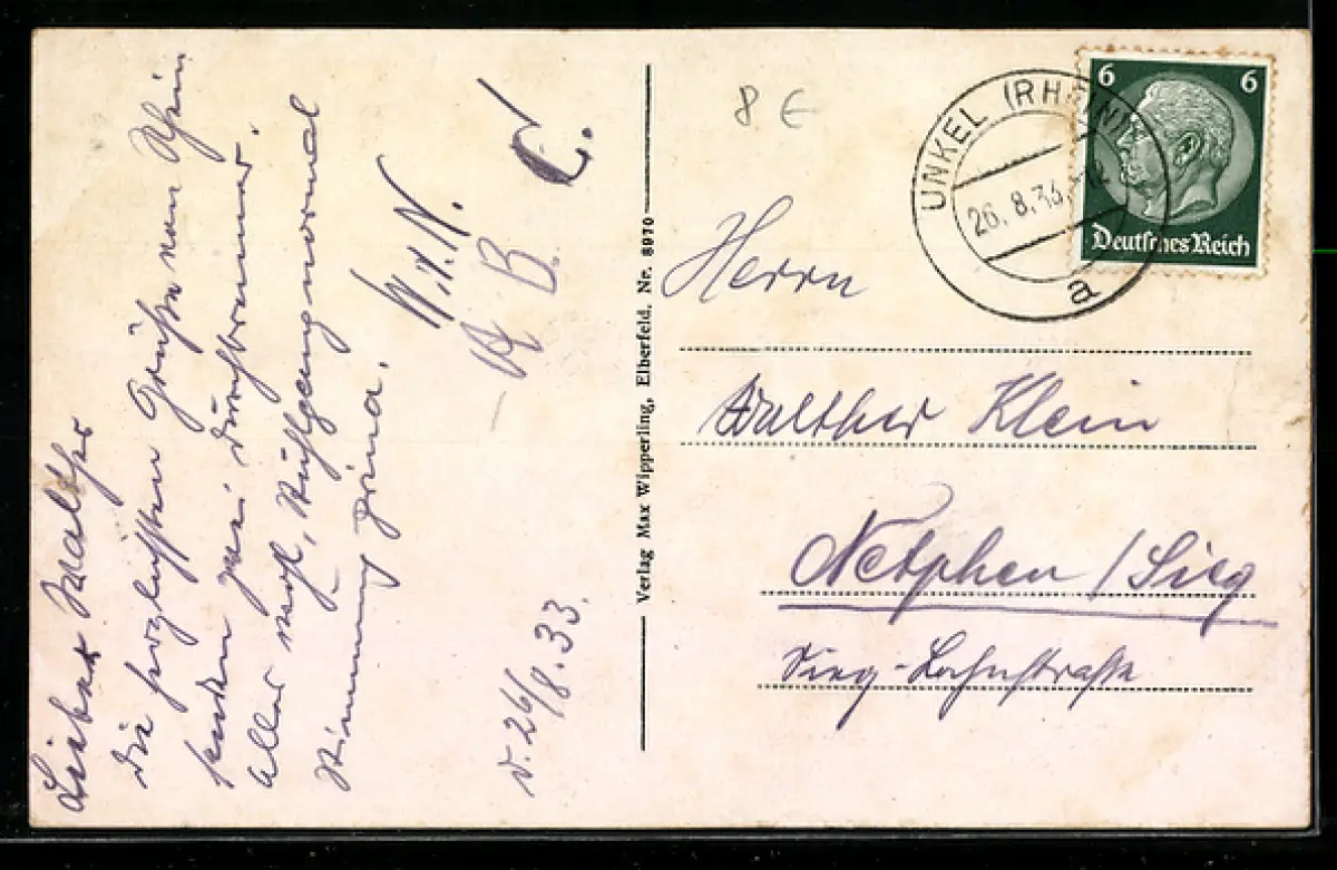 gelaufen 1933, Einrisse links und rechts mittig, Bugspur links, sonst guter Zustand