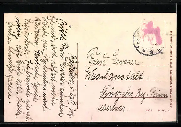 alte Ansichtskarte, gelaufen, rückseitig Klebe- und Papierreste, rückseitig Oberflächenschaden, guter Zustand