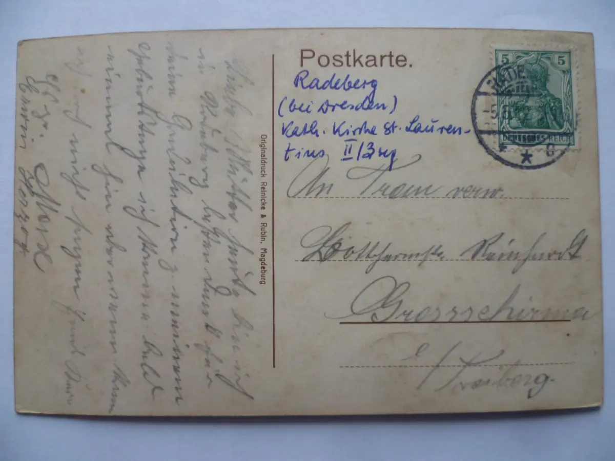 Verlag Reinicke & Rubin, Magdeburg. Gelaufen 1912, gering fleckig. Gut erhalten.