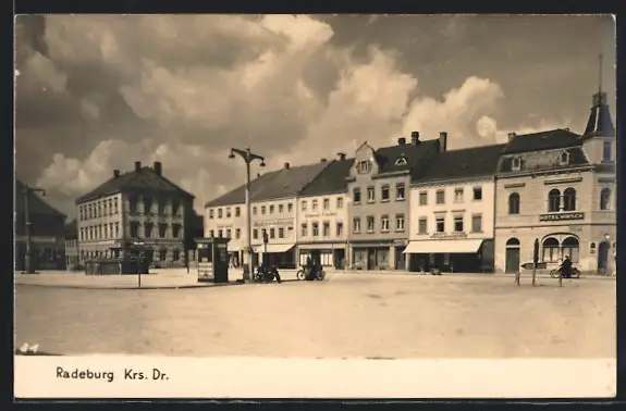 AK Radeburg, Marktplatz mit Hotel Hirsch