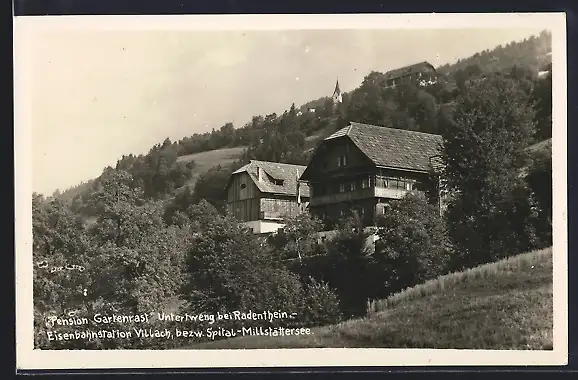 AK Radenthein, Untertweng, Pension Gartenrast im Sonnenschein