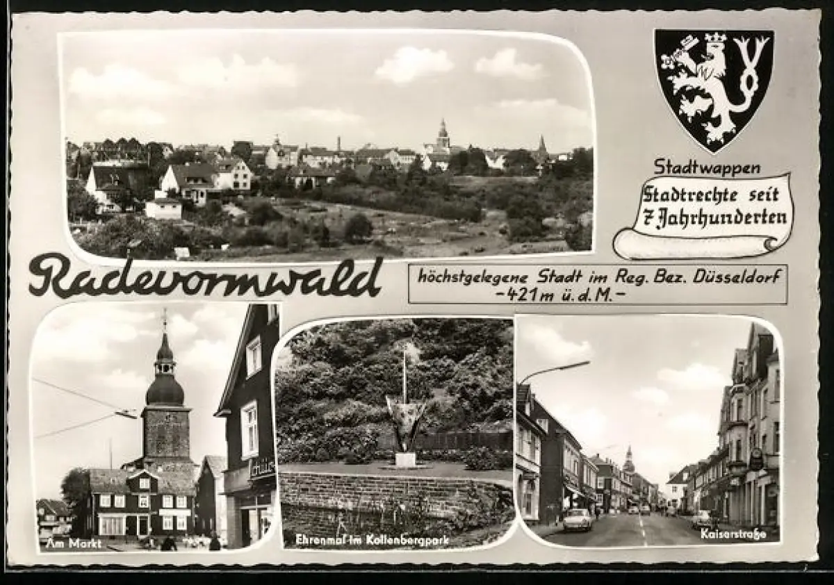 AK Radevormwald, Am Markt, Ehrenmal im Kottenbergpark, Kaiserstrasse, Stadtwappen