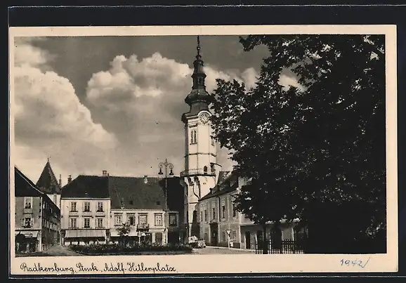 AK Radkersburg, Parite auf dem platz mit Rathaus und Rathausturm