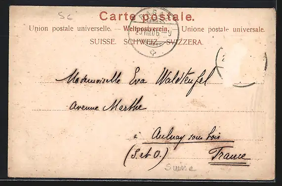 alte Ansichtskarte, gelaufen 1906, Briefmarke entfernt, rückseitig Oberflächenschaden, guter Zustand