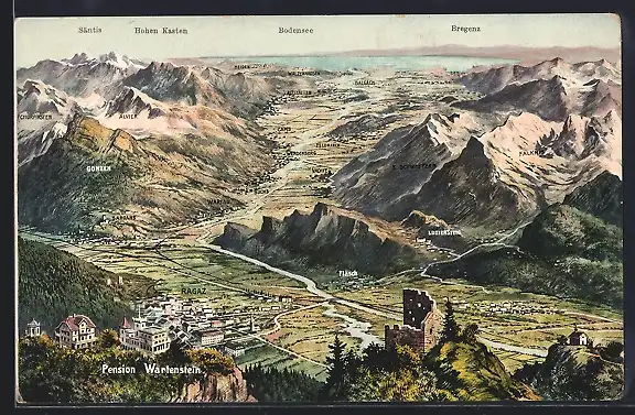 AK Ragaz, Panorama mit Blick auf Ragaz und Umland