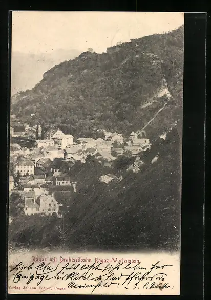 AK Ragaz, Teilansicht mit Drahtseilbahn Ragaz-Wartenstein