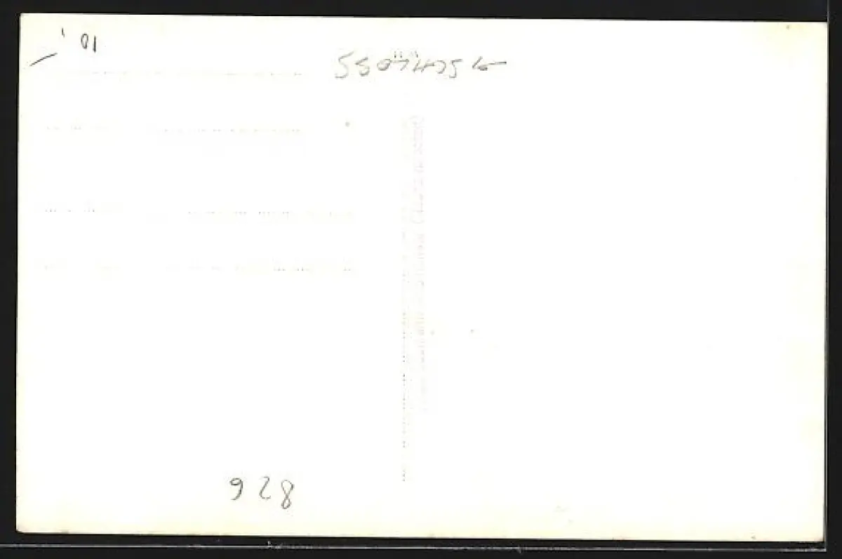 Personenbezogene Daten auf der Rückseite der Karte wurden durch blauen Textmarker unkenntlich gemacht. Die blauen Stellen sind auf die Vorderseite durchgeweicht und wirken sich negativ auf das Postkartenfoto aus