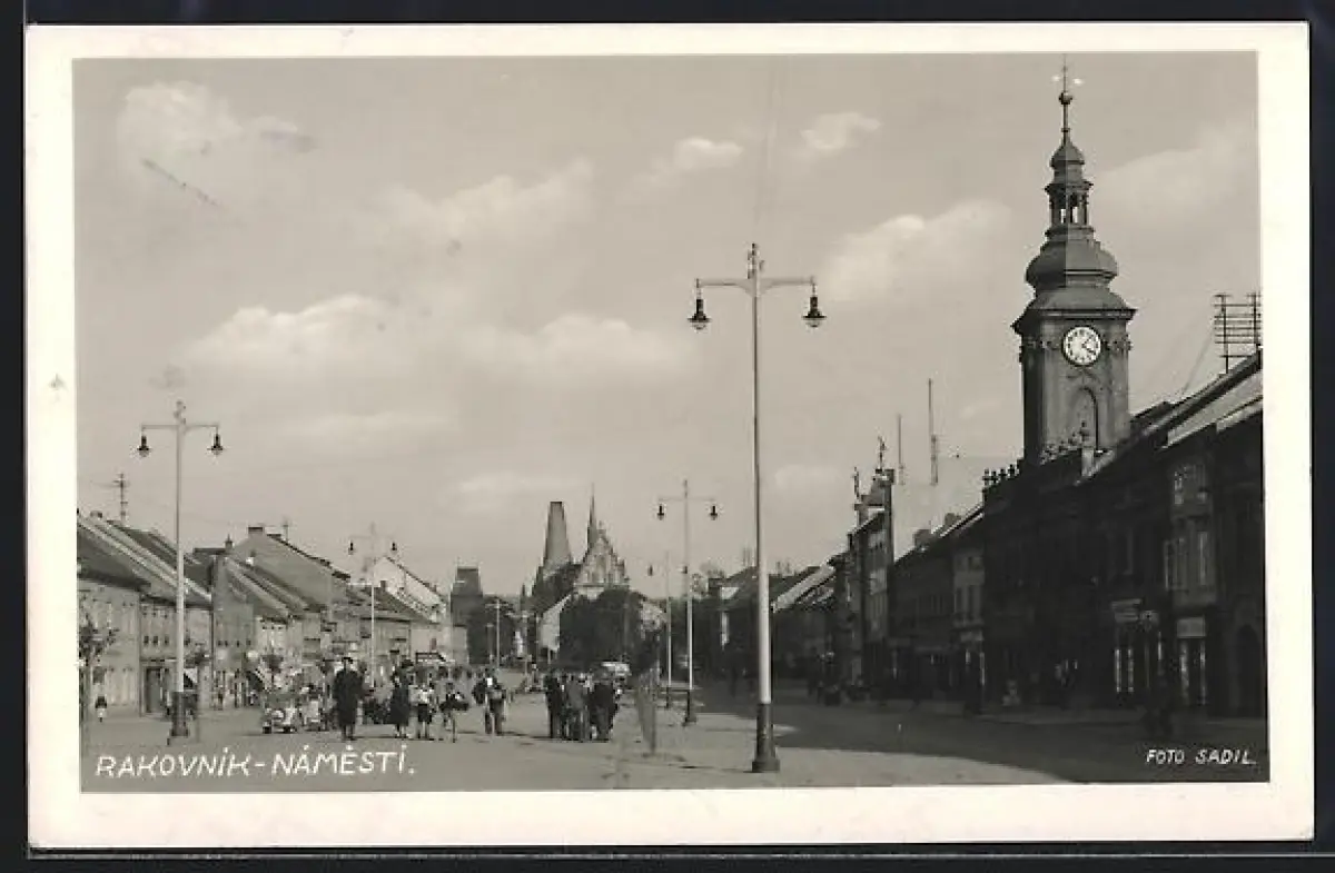 AK Rakovník-Námestí, Strassenpartie mit Kirche