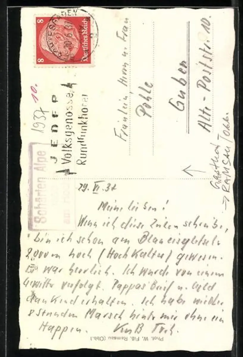 alte Ansichtskarte, gelaufen 1937, guter Zustand