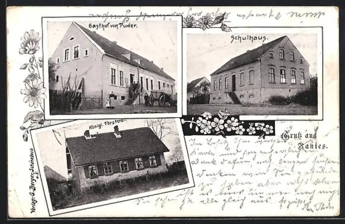 AK Ranies, Gasthof von Puder, Schulhaus, Königl. Försterei
