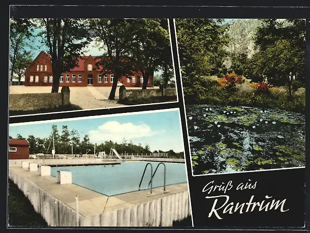 AK Rantrum /Nordfriesland, Gebäudeansicht, Schwimmbad, Gewässer