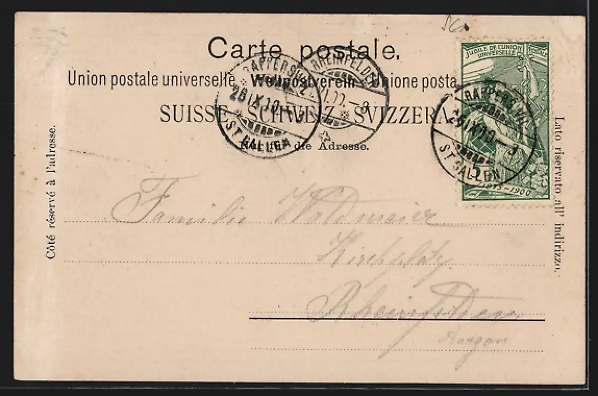 alte Ansichtskarte, gelaufen 1900, Eckknick li. oben, guter Zustand
