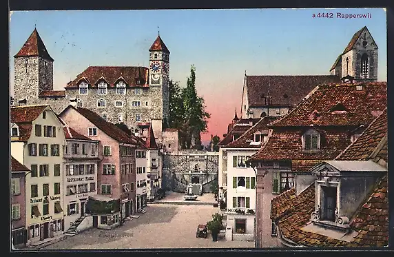 AK Rapperswil, Strassenpartie mit Restaurant Rossli