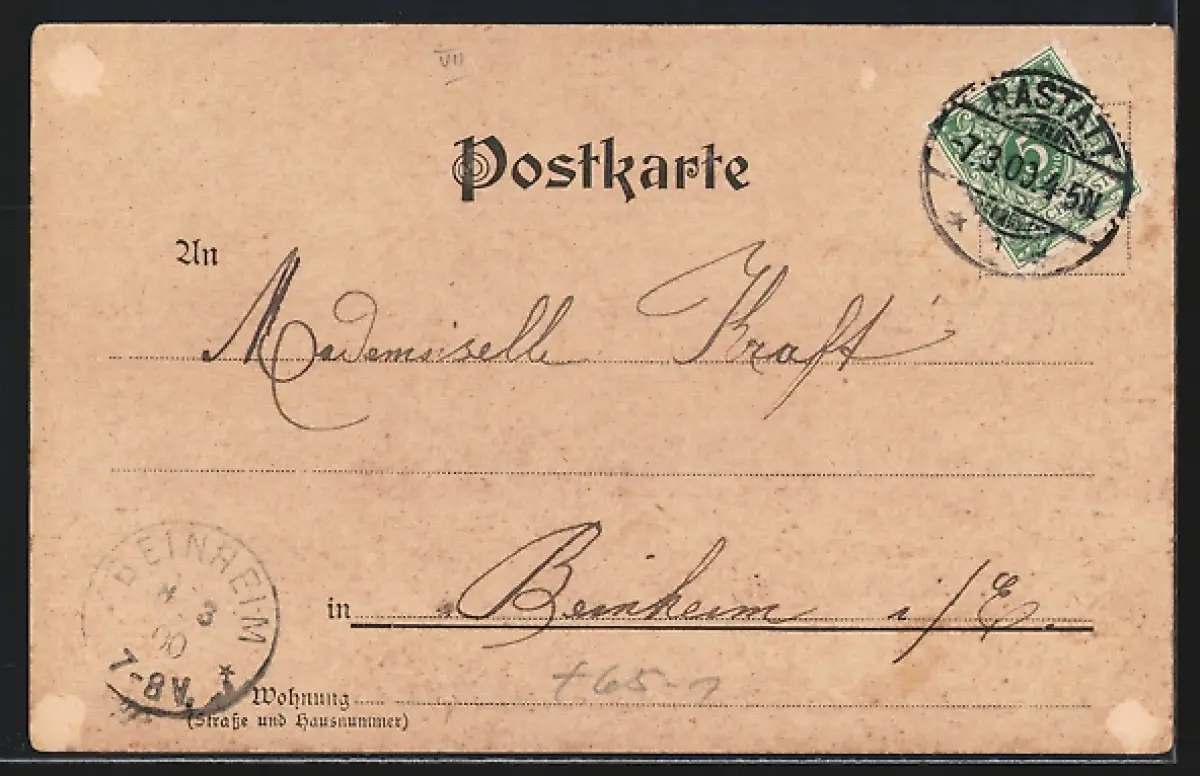 alte Ansichtskarte, gelaufen 1900, rückseitig Oberflächenschaden, guter Zustand