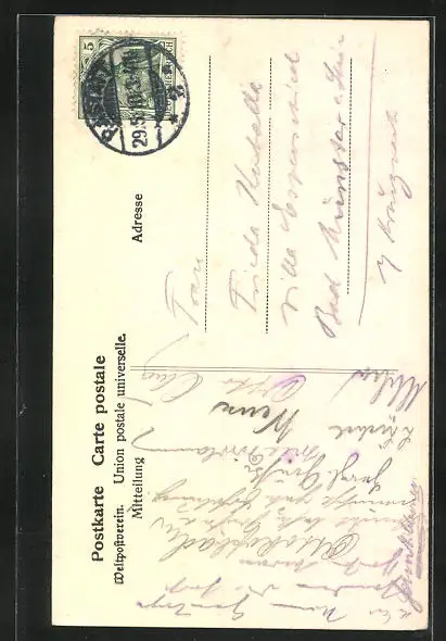 alte Ansichtskarte, gelaufen 1910, Stempelspur, guter Zustand