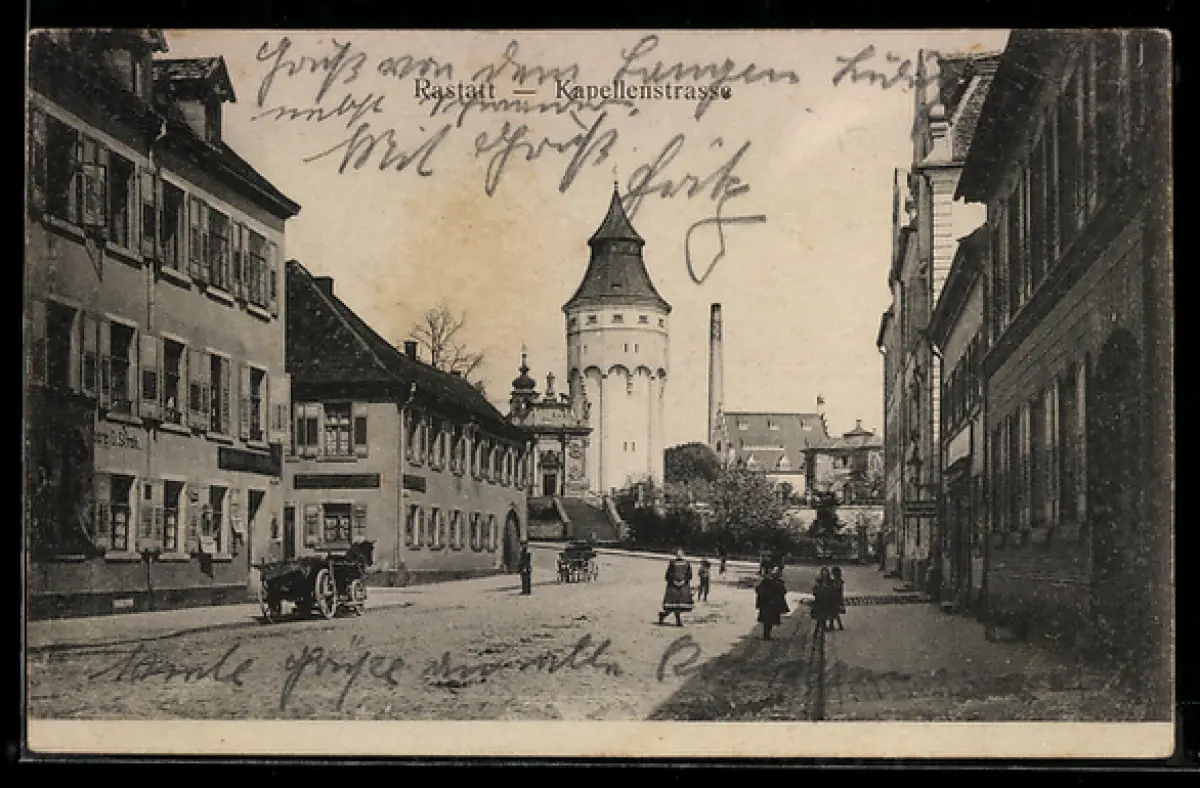 AK Rastatt, Kappellenstrasse mit Blick auf den Wasserturm