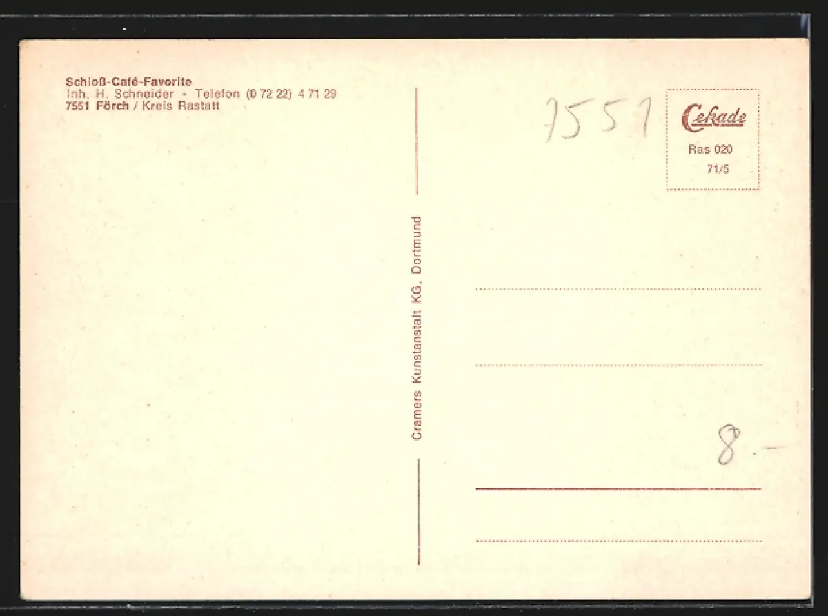 AK Rastatt, Schloss-Café-Favorite, Inh. H. Schneider