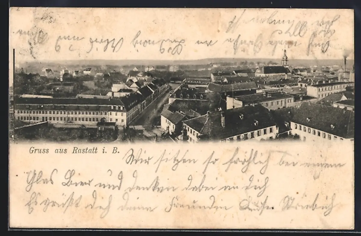 AK Rastatt i. B., Stadtansicht, Kaserne
