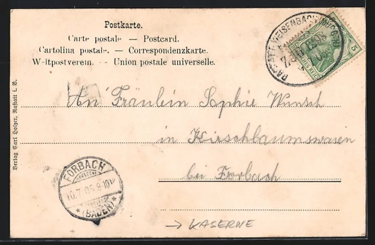 alte Ansichtskarte, gelaufen 1905, guter Zustand