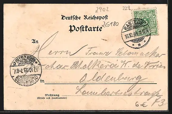 alte Ansichtskarte, gelaufen 1898, guter Zustand
