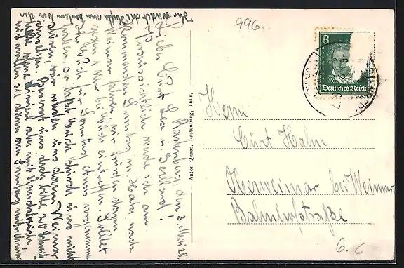alte Ansichtskarte, gelaufen, Briefmarke entfernt, rückseitig Oberflächenschaden, guter Zustand