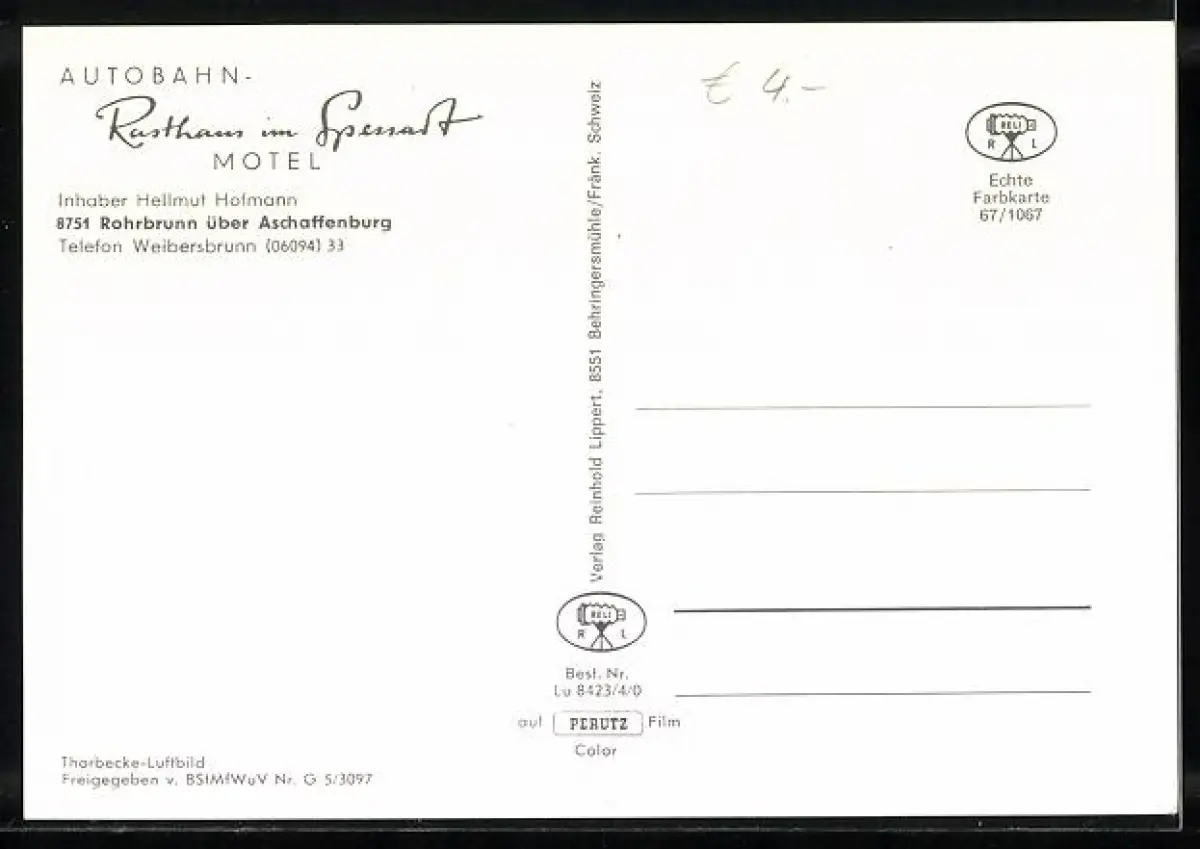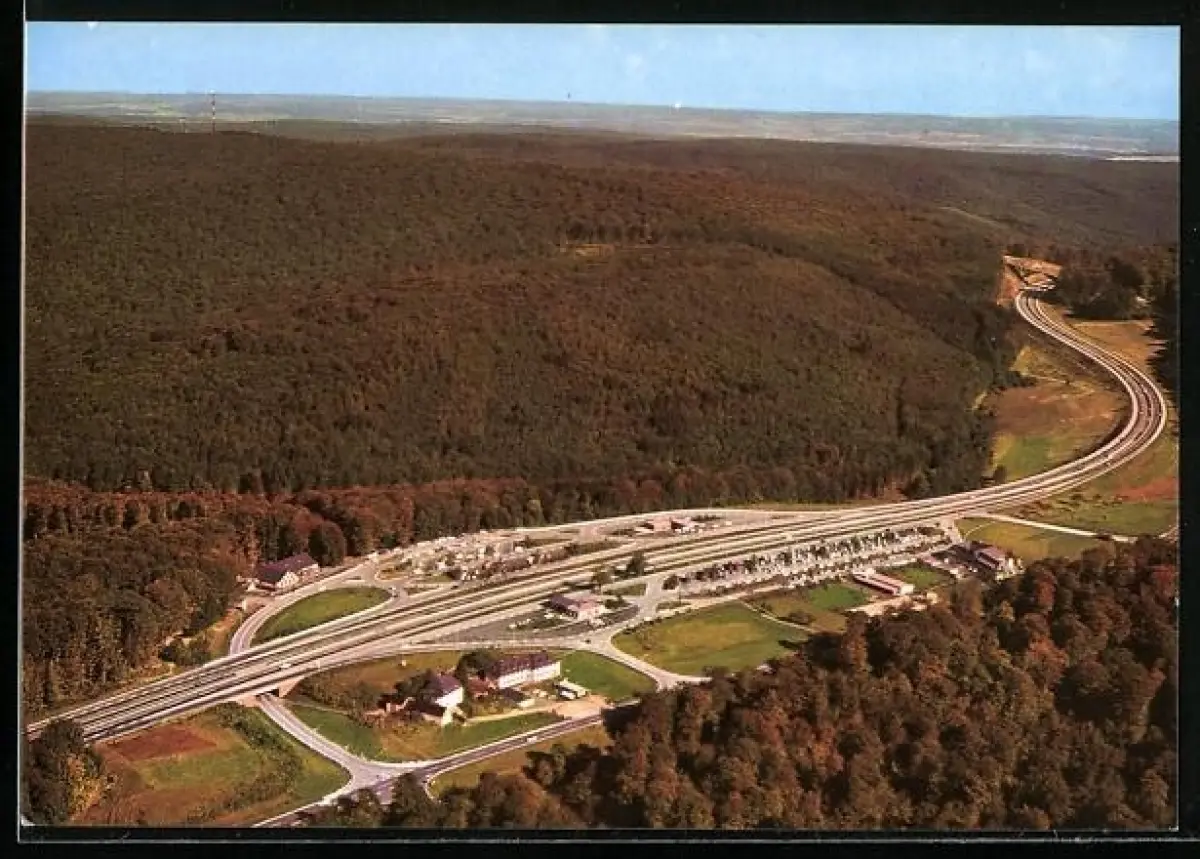 AK Raststätte im Spessart von Hellmut Hofmann aus der Vogelschau mit Umgebung