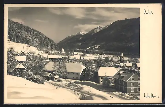 AK Ratece, Ortsansicht in den winterlichen Bergen
