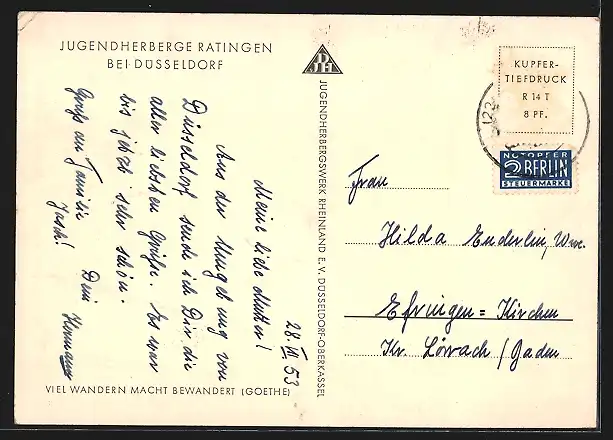 gelaufen 1953, Briefmarke entfernt, guter Zustand