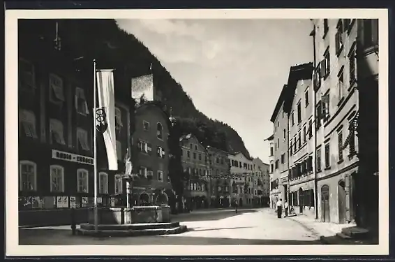 AK Rattenberg /Unterinntal, Strassenpartie mit Geschäften und Brunnen