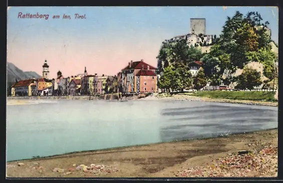 AK Rattenberg am Inn in Tirol, Ortsansicht vom Innufer aus