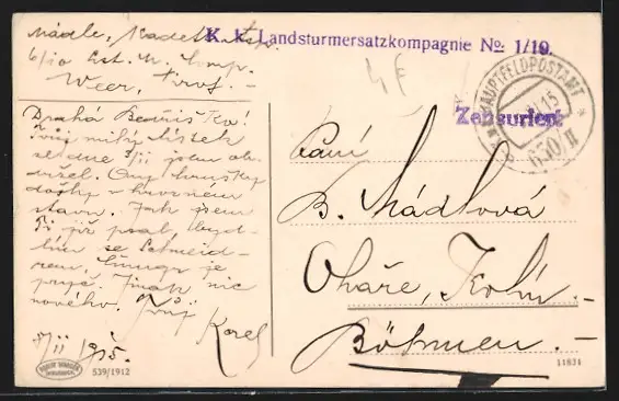 gelaufen 1915, minimaler Einriss oben rechts, guter Zustand