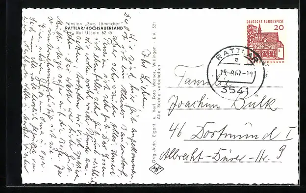 AK Rattlar /Hochsauerland, Pension Zum Lämmchen